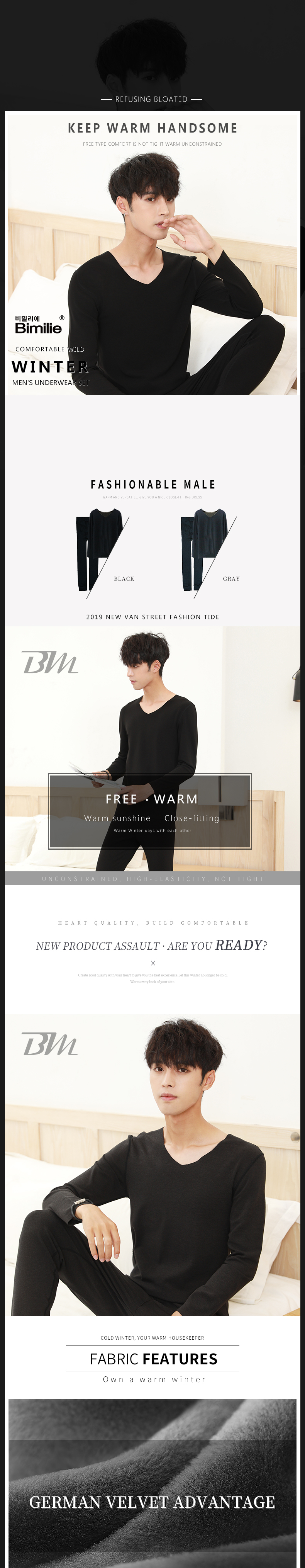 남자 벨벳 속옷 따뜻한 정장(男士德绒内衣保暖套装)